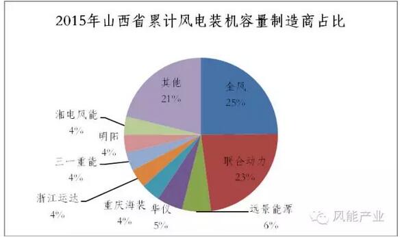 圖2.2015年山西省累計(jì)風(fēng)電裝機(jī)容量制造商占比