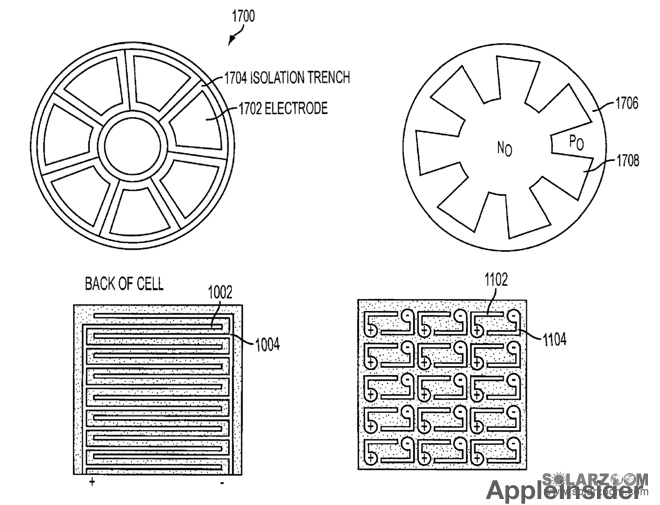 中國儲(chǔ)能網(wǎng)訊:本周二美國專利和商標(biāo)局通過了一項(xiàng)蘋果申請的名為“觸控傳感器和太陽能電池集成組件”的專利,該專利描述了一種可以在類似媒體播放器或手機(jī)等電子設(shè)備上直接將太陽能電池集成在觸控面板上的專利。