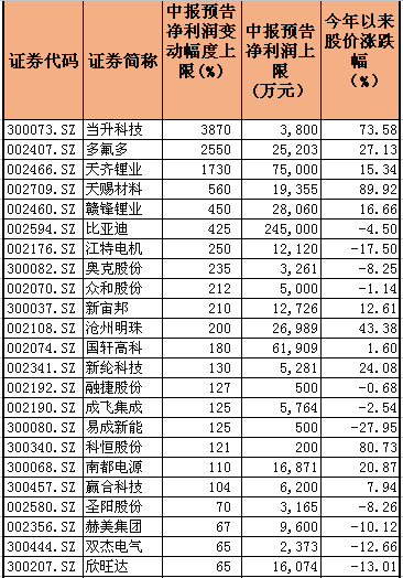 部分鋰電池相關(guān)個(gè)股半年報(bào)業(yè)績(jī)預(yù)告
