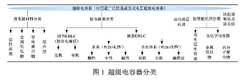 圖1和圖2分別介紹了超級(jí)電容器的分類以及不同超級(jí)電容的一些參數(shù)比較。