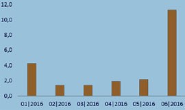 特別引人注目的是,2016年6月部署量達(dá)到11.3GW,超出了2013年(10.95GW)和2014(10.60GW)年的總裝機(jī)量。