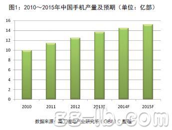 據(jù)高工鋰電產(chǎn)業(yè)研究所(GBII)統(tǒng)計(jì),2012年中國手機(jī)產(chǎn)量達(dá)到12.5億部。預(yù)計(jì)到2015年,中國的手機(jī)出貨量有望達(dá)到15.2億部。(圖1)2006年以來,手機(jī)電池基本實(shí)現(xiàn)了鋰電池的全覆蓋,按照2012年手機(jī)出貨量12.5億部來計(jì)算的話,合計(jì)產(chǎn)值高達(dá)232億元。