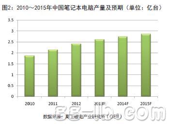 筆記本電腦是目前鋰電池的第二大應(yīng)用領(lǐng)域。據(jù)高工鋰電產(chǎn)業(yè)研究所(GBII)整理的數(shù)據(jù)顯示,2012年中國筆記本電腦出貨量達(dá)到2.4億臺(圖2)。