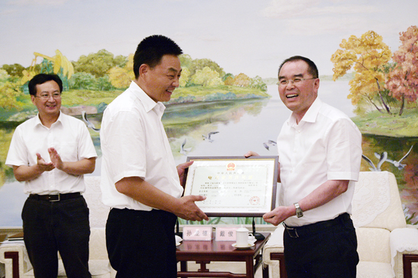 會議結束后,戴俊良局長與孫龍德總經理一同出席電力業(yè)務許可證頒發(fā)儀式。戴俊良局長代表國家能源局東北監(jiān)管局,將東北地區(qū)第一張企業(yè)電網《電力業(yè)務許可證》(供電類)頒發(fā)給大慶油田電力集團公司,大慶油田有限責任公司副總經理、大慶石油管理局副局長朱國文代表大慶油田電力集團接受許可證。