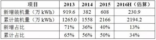 表3為2013年到2016年上半年(2016H),西北五省新增裝機(jī)量和累計裝機(jī)量在全國總量中的比例。