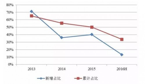 2016年上半年,受“限電”和“政策環(huán)境”影響,西北的新增裝機(jī)量占比開始下降到13%。與此同時,中東部省份開始成為投資商們追逐的熱點(diǎn)地區(qū)。
