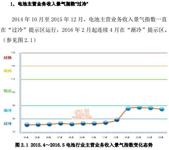中國(guó)儲(chǔ)能網(wǎng)訊:2014年10月至2015年12月,電池主營(yíng)業(yè)務(wù)收入景氣指數(shù)一直在“過(guò)冷”提示區(qū)運(yùn)行,2016年2月起連續(xù)4月在“漸冷”提示區(qū)。從子行業(yè)看,鋰離子電池制造業(yè)增速較快。鋰離子電池制造完成累計(jì)主營(yíng)業(yè)務(wù)收入903.64億元,同比增長(zhǎng)29.77%;其他電池制造完成累計(jì)主營(yíng)業(yè)務(wù)收入771.96億元,同比增長(zhǎng)3.69%。