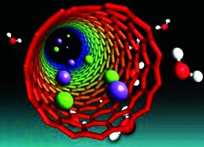 研究人員設(shè)計了由絕緣的防水膜和外部直徑為幾十納米的硼氮納米管組成的實驗裝置。他們讓納米管穿過薄膜,并在納米管兩端插上電極。當(dāng)?shù)拖趟糜诒∧蓚?cè)時,測出穿過納米管的電流強度比當(dāng)前技術(shù)效率高1000倍。研究人員認為,這是由于硼氮納米管表面附有大量負電荷,能夠吸引咸水中的陽離子。