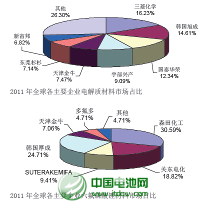 另外,珠海賽緯、香河昆侖化學(xué)、張家港華天、上海圖爾等企業(yè)2011 年共產(chǎn)銷電解液材料約1,800 噸。珠海賽緯的總經(jīng)理戴小兵曾為國(guó)泰華榮的技術(shù)核心,公司現(xiàn)有電解液年產(chǎn)能2,000 噸,目前,在戴小兵的帶領(lǐng)下,公司正在積極開(kāi)發(fā)動(dòng)力鋰離子電池電解液技術(shù)。上海圖爾的技術(shù)來(lái)自中科院,產(chǎn)品主要供應(yīng)蘇州星恒,這幾年的發(fā)展幾乎陷于停滯狀態(tài)。香河昆侖化學(xué)是一家中日合資企業(yè),現(xiàn)有電解液年產(chǎn)能2,000 噸。