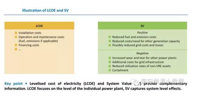 中國儲能網(wǎng)訊:國際可再生能源署日前發(fā)布報(bào)告Next Generation of Wind and Solar Power: From Cost to Value(下一代風(fēng)電光伏:從成本到價值),認(rèn)為風(fēng)電光伏在全球的應(yīng)用進(jìn)入了新的階段,業(yè)內(nèi)十分關(guān)注的“平價上網(wǎng)”(以平準(zhǔn)成本levelised cost of electricity計(jì)量 , 簡稱LCOE)的單一指標(biāo)已經(jīng)不夠,隨著風(fēng)電光伏的比例的提高,我們需要特別重視風(fēng)電光伏為電力系統(tǒng)所帶來的“系統(tǒng)價值”(system value,簡稱SV)。系統(tǒng)價值要考慮替代化石燃料、減排(環(huán)境和氣候)的收益與成本,也包括為間歇性電源電網(wǎng)帶來的額外成本。簡單來說,LCOE衡量的是為風(fēng)電光伏付出的單位成本,而SV衡量的是每單位風(fēng)電光伏為電力系統(tǒng)帶來的凈增值。