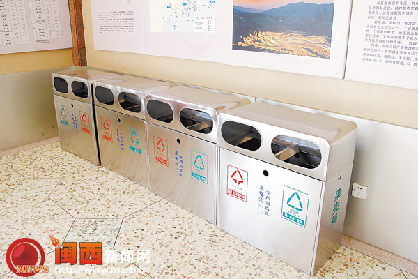永定二中是全市較早開始做垃圾分類回收的學校。2001年,該校就設立了電池回收點,并時常開展綠色環(huán)保的宣傳活動。學校每年把收集起來的廢舊電池交與該縣的垃圾回收站。圖為該校教學樓門口的果殼箱,上面設立了電池回收專用孔。 記者 劉玉榮 攝