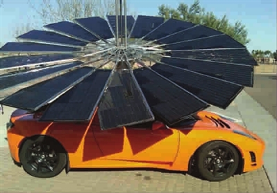 中國儲(chǔ)能網(wǎng)訊:最近,美國亞利桑那州斯科茨代爾君主能源公司開發(fā)出一種能折疊的“蓮花”太陽能移動(dòng)充電系統(tǒng)。它一共有18塊太陽能電池板,伸展開來酷似一朵“蓮花”。安放在汽車頂上時(shí),好像一個(gè)超大型的樹冠或松軟的帽子,十分引人注目(見圖)。