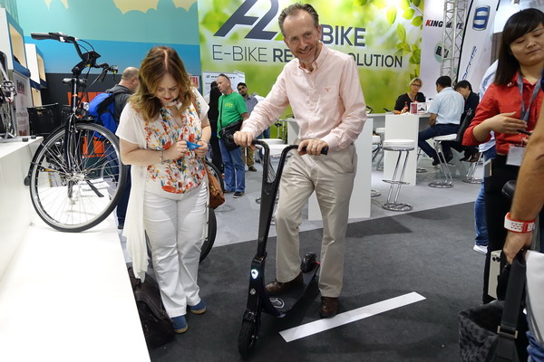 猛獅智能車輛首次亮相的新品還有“π”碳纖維電動(dòng)滑板車,該產(chǎn)品擁有1項(xiàng)國際專利(PCT)、2項(xiàng)發(fā)明專利、10項(xiàng)實(shí)用新型及外觀專利,其時(shí)尚前衛(wèi)的外觀、9.6kg的輕量型設(shè)計(jì),極大地吸引了采購商們的合作興趣,現(xiàn)場與來自意大利、以色列、韓國、捷克等國家的代理商簽訂了合作協(xié)議。