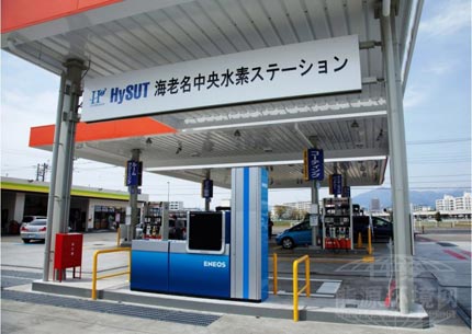 氫基礎(chǔ)設(shè)施中,日本目前已建成13座加氫站,而且著眼于商用化的加氫站已經(jīng)問世。吉坤日礦日石能源公司于2013年4月19日,在海老名市中新田加油站中并設(shè)了供應(yīng)氫氣的“加氫站”(圖1)。