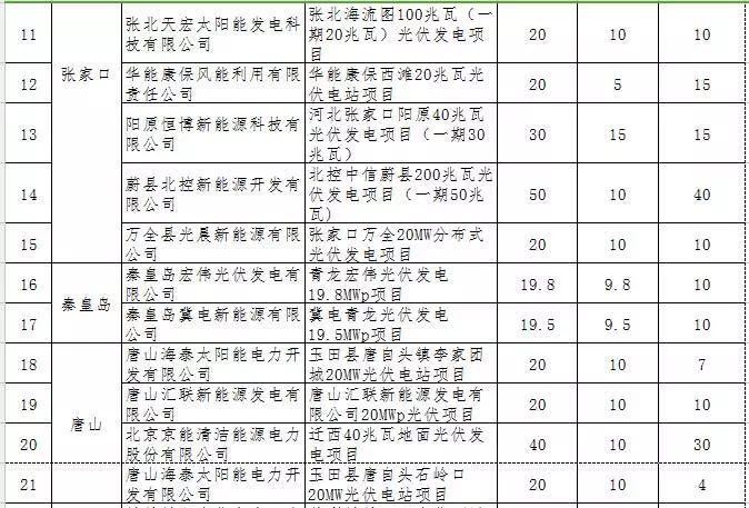 河北省2016年第一批普通光伏發(fā)電項目并網(wǎng)計劃安排情況公示
