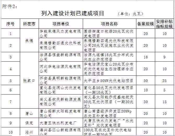 本次計劃安排所有項目均為省已備案且已建成具備并網(wǎng)條件的項目;