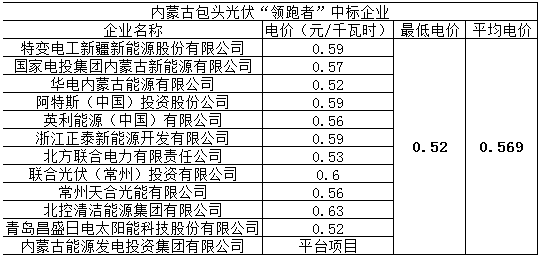 下面我們著重看一下兩淮、陽泉、芮城和包頭領跑者項目中的中標企業(yè)及電價。