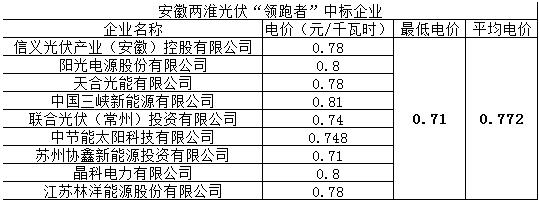 表四安徽兩淮光伏領跑者中標企業(yè)及電價