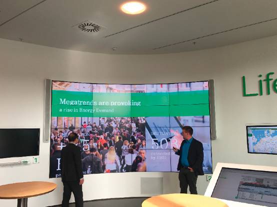在柏林,考察團(tuán)拜訪了大瀑布公司。這家100%瑞典國(guó)有公司,涉及了熱電生產(chǎn)、銷售以及配電各個(gè)環(huán)節(jié)。一名工作人員向我們介紹。近些年來(lái),公司發(fā)生了兩個(gè)比較重要的轉(zhuǎn)變:一是發(fā)電業(yè)務(wù)板塊向低碳轉(zhuǎn)移,逐漸出售褐煤電站。二是從售電向能源服務(wù)轉(zhuǎn)型?!暗?012年,德國(guó)建立比較健全的電力市場(chǎng)規(guī)則。從2011到2012年間,Vattenfall將煤炭、電力、天然氣等交易都進(jìn)入市場(chǎng)。并且以小時(shí)、日、十天為單位的市場(chǎng)需求確定一次能源的消費(fèi)。”
