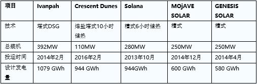 表:美國(guó)五大光熱電站信息簡(jiǎn)表