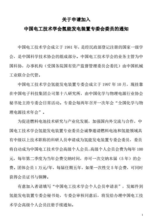 關(guān)于申請加入中國電工技術(shù)學(xué)會氫能發(fā)電裝置專委會委員的通知