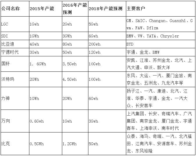 部分主流動(dòng)力電池廠商產(chǎn)能規(guī)劃