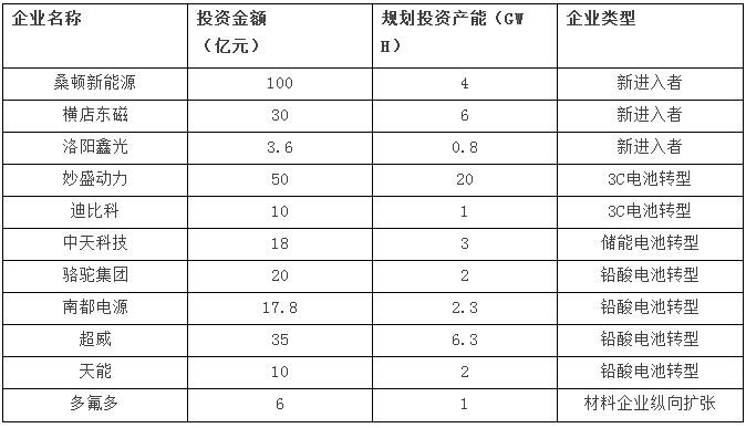 新進(jìn)入企業(yè)數(shù)量大幅增長(zhǎng),根據(jù)鋰電大數(shù)據(jù)統(tǒng)計(jì),2016年新進(jìn)入的動(dòng)力電池企業(yè)超過(guò)20家,新進(jìn)入的企業(yè)類(lèi)型主要3C電池轉(zhuǎn)型、跨界、鉛酸電池轉(zhuǎn)型等。