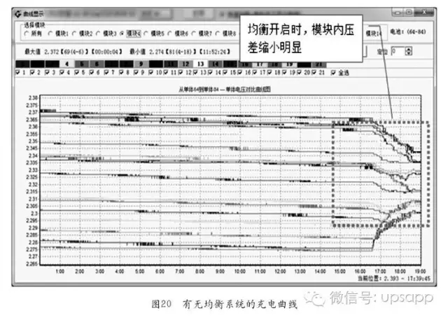 從圖20可以看出300Ah電池組220只單體電芯在開(kāi)啟BMU均衡的時(shí)候,單體電壓從分散的狀態(tài)逐漸趨于集中,表明單體均衡功能有效。