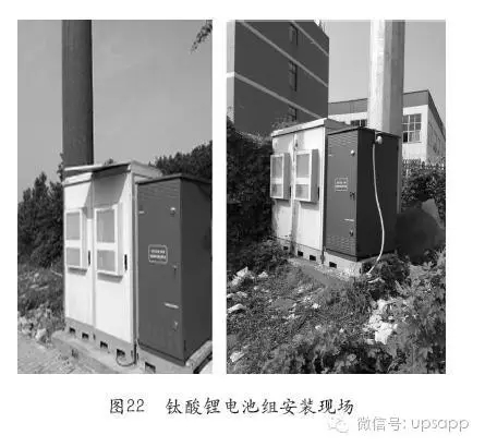 鈦酸鋰電池的性能測(cè)試、容量試驗(yàn)和現(xiàn)場(chǎng)安裝,日前在某地順利完成。驗(yàn)證了本文所述內(nèi)容的正確性。圖22為鈦酸鋰電池組的安裝現(xiàn)場(chǎng)。