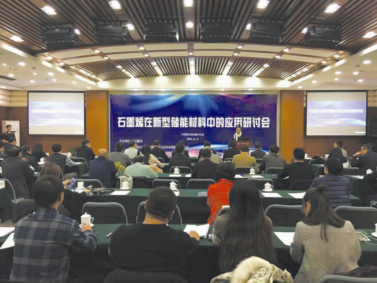 此次研討會由石墨邦、中國化學(xué)和物理電源行業(yè)協(xié)會儲能應(yīng)用行業(yè)分會、中國電子信息產(chǎn)業(yè)發(fā)展研究院共同發(fā)起和主辦,北京化工大學(xué)、清華大學(xué)、天津工業(yè)大學(xué)、中科院合肥物質(zhì)科學(xué)研究院等高校和科研院所專家學(xué)者,以及石墨烯生產(chǎn)企業(yè)和儲能材料及設(shè)備生產(chǎn)企業(yè)代表等百余人參加,并得到了工信部原材料司的大力支持。
