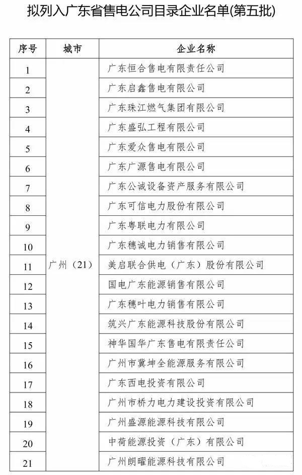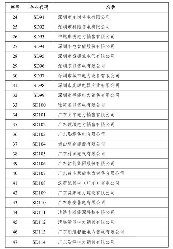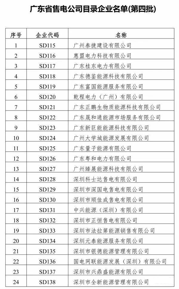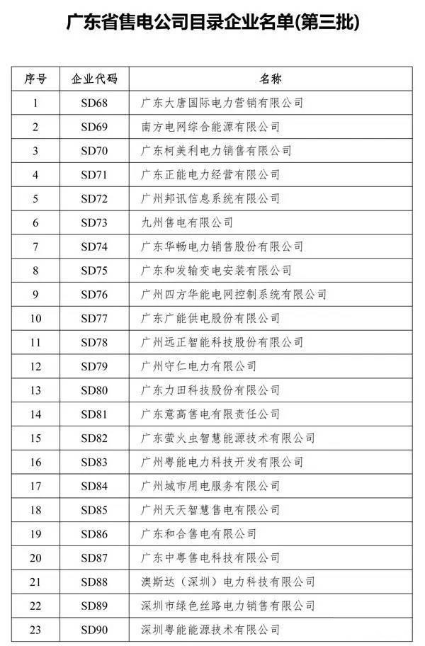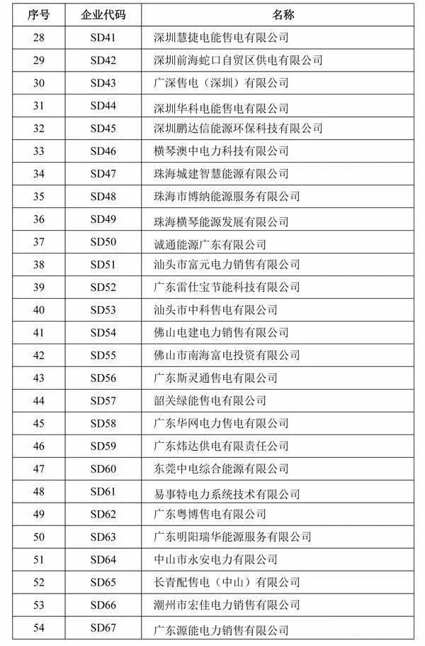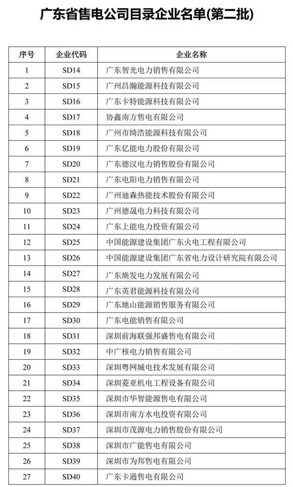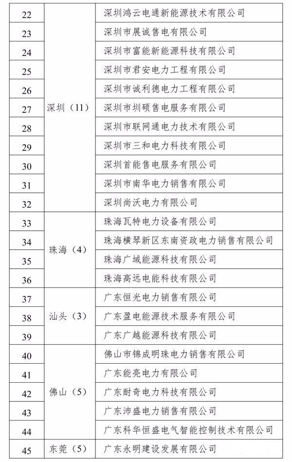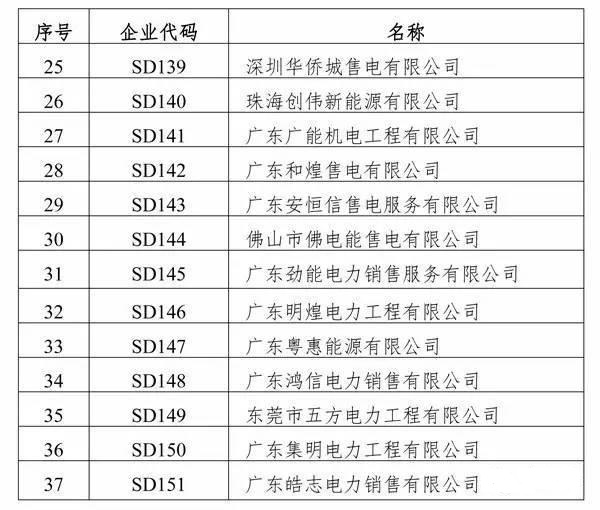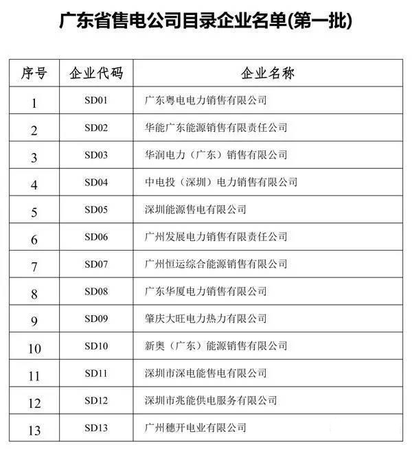 廣東省售電公司目錄企業(yè)名單