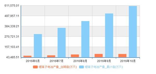 中國儲能網(wǎng)訊:2016年10月我國鋰離子電池產量當月產量78935.6萬只,1-10月累計產量606112.3萬只,同比增長54.6%,累計增長35.7%。