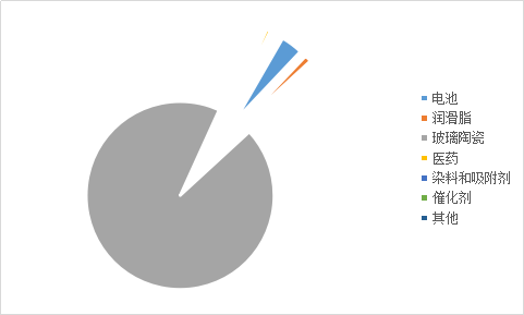 鋰產(chǎn)品消費(fèi)中,電池占50.9%、潤(rùn)滑脂占15.3%、玻璃陶瓷占12.8%、醫(yī)藥占8.2%,染料和吸附劑占5.1%,催化劑占4.2%,其他占3.5%。