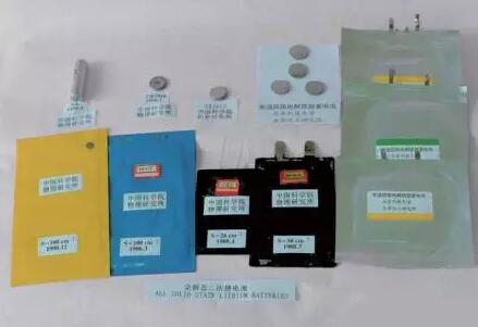 1989年,中國(guó)三個(gè)研究團(tuán)隊(duì)制備的全固態(tài)鋰電池樣品,物理所:左下1-4和左上1-3;北京科技大學(xué):左上第4、5和右下;長(zhǎng)春應(yīng)化所:上面中間的樣品