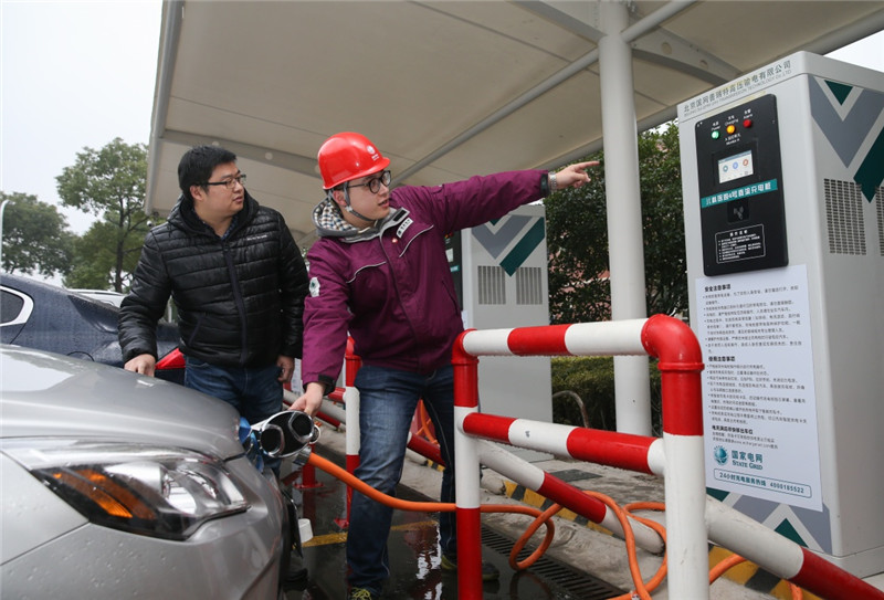 中國儲能網(wǎng)訊:1月5日,在上海市顧戴路一處新能源汽車停車場,國網(wǎng)上海市南供電公司的工作人員(右)在指導(dǎo)市民使用充電樁。
