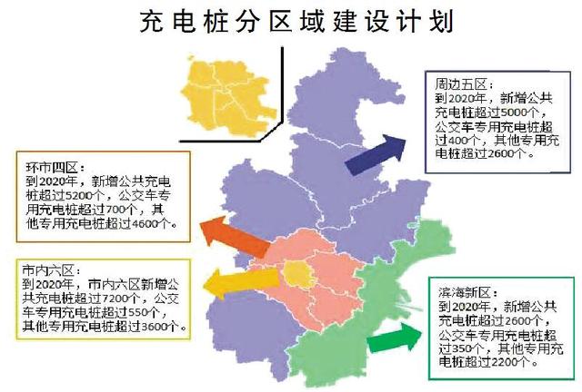 按照規(guī)劃,充電基礎(chǔ)設(shè)施包括公交車充換電站、出租車充換電站、物流環(huán)衛(wèi)郵政等專用充電站、城市公共充電站、公共分散式充電樁、用戶自用充電樁、城際快充站等七大類設(shè)施。根據(jù)規(guī)劃總體目標,按照適度超前原則,到2020年,在中心市區(qū)、環(huán)市四區(qū)和濱海新區(qū)的建成區(qū),建設(shè)全面覆蓋、密度較高的充電服務(wù)網(wǎng)絡(luò),基本建成平均服務(wù)半徑為0.9公里的公用充電基礎(chǔ)設(shè)施網(wǎng)絡(luò)體系;在環(huán)市四區(qū)和濱海新區(qū)的其他區(qū)域、其他五區(qū)建成區(qū)建設(shè)布局均衡、適當集中的充電服務(wù)網(wǎng)絡(luò),基本建成平均服務(wù)半徑為3公里的公用充電基礎(chǔ)設(shè)施網(wǎng)絡(luò)體系;在靜海、寶坻、武清、寧河、薊州區(qū)五區(qū)的其他區(qū)域形成分級明確、適當預(yù)留的充電服務(wù)網(wǎng)絡(luò),基本建成平均服務(wù)半徑為5公里的公用充電基礎(chǔ)設(shè)施網(wǎng)絡(luò)體系。