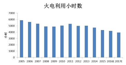 圖3. 2005-2017年火電利用小時(shí)數(shù)變化情況