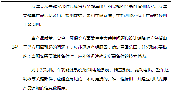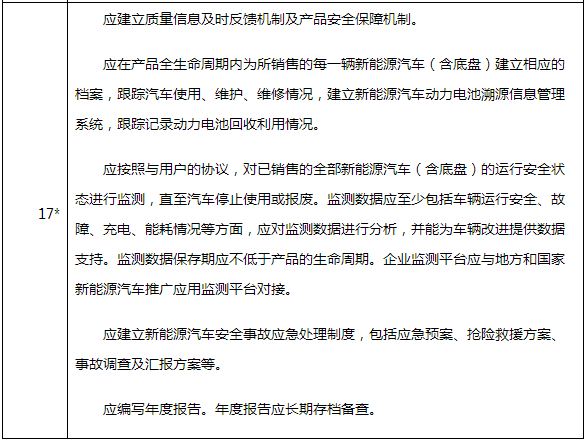 ②2017版對售后服務及產(chǎn)品安全保障能力規(guī)定,“應在產(chǎn)品全生命周期內(nèi)為所銷售的每一輛新能源汽車(含底盤)建立相應的檔案,跟蹤汽車使用、維護、維修情況,建立新能源汽車動力電池溯源信息管理系統(tǒng),跟蹤記錄動力電池回收利用情況?!保ㄟ@是否決項,硬性指標)。