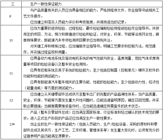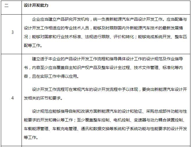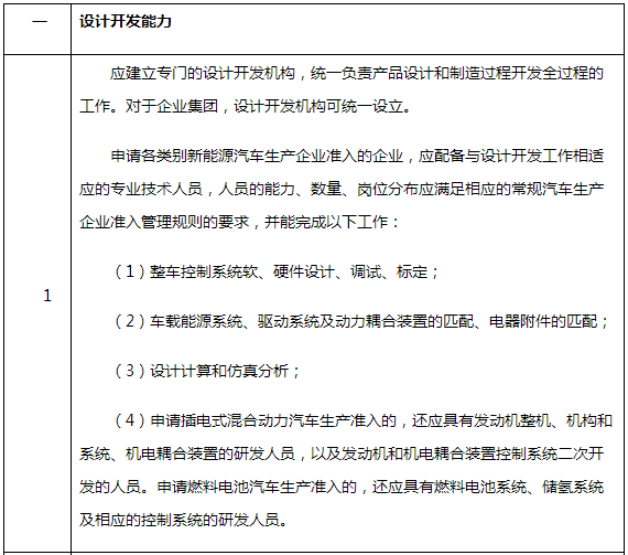 應具備必需的設計開發(fā)能力、生產(chǎn)能力、產(chǎn)品生產(chǎn)一致性保證能力、售后服務及產(chǎn)品安全保障能力,符合《新能源汽車生產(chǎn)企業(yè)準入審查要求》。符合相同類別的常規(guī)汽車生產(chǎn)企業(yè)準入管理規(guī)則。