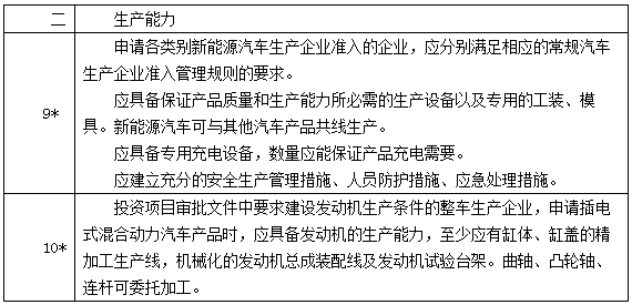 1)生產(chǎn)新能源汽車企業(yè)準入方面: