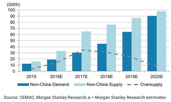 圖3 非中國市場的動(dòng)力電池供求關(guān)系