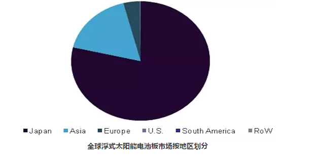 全球浮式太陽能市場(也稱為Floatovoltaics)的大部分增長將來自部署這類技術(shù)的國家,包括日本、英國、中國和巴西。特別是日本,預(yù)計(jì)將引領(lǐng)浮式太陽能面板的發(fā)展,主要是因?yàn)橥恋乩寐实?,自然資源有限。2015年,日本占浮式太陽能市場收入的75%。此外,由于日本政府批準(zhǔn)的大量計(jì)劃,該行業(yè)預(yù)計(jì)將大幅增長。