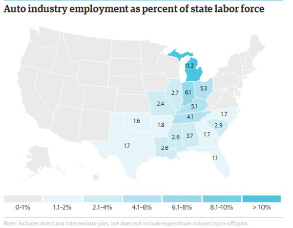 據(jù)勞工部統(tǒng)計(jì),截止2016年12月,美國(guó)汽車及銷售維修等相關(guān)行業(yè)就業(yè)總?cè)藬?shù)高達(dá)385.3萬(wàn)人,制造業(yè)占24.2%(93.4萬(wàn)人),可以說(shuō),汽車業(yè)是美國(guó)制造最重要的行業(yè)之一,特朗普新政府要重振美國(guó)制造業(yè),增加美國(guó)銹帶地區(qū)的就業(yè),汽車行業(yè)是重中之重。