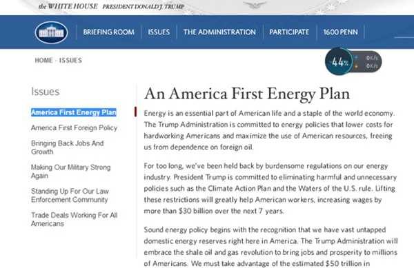 白宮官網(wǎng)在上任第一天即將“美國(guó)優(yōu)先能源計(jì)劃”列為第一號(hào)議題