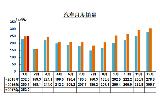 中國(guó)儲(chǔ)能網(wǎng)訊:2月13日,中國(guó)汽車(chē)工業(yè)協(xié)會(huì)發(fā)布了2017年1月汽車(chē)產(chǎn)銷(xiāo)數(shù)據(jù)。數(shù)據(jù)顯示,1月我國(guó)汽車(chē)產(chǎn)銷(xiāo)分別為236.9萬(wàn)輛和251.95萬(wàn)輛,同比分別下降3.86%和同比微增0.23%。