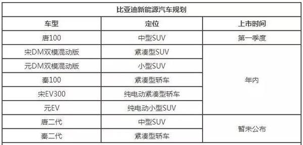 動(dòng)力電池產(chǎn)能提升的同時(shí),比亞迪還規(guī)劃了8款新能源車,將陸續(xù)投放市場(chǎng) 。2017年比亞迪還將推出純電續(xù)航里程為100公里的唐100、秦100及宋、元的DM混動(dòng)版車型。宋EV、元EV及全新的唐二代及秦二代也將陸續(xù)上市。