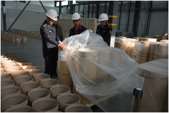 檢驗檢疫工作人員現(xiàn)場進(jìn)行檢驗。