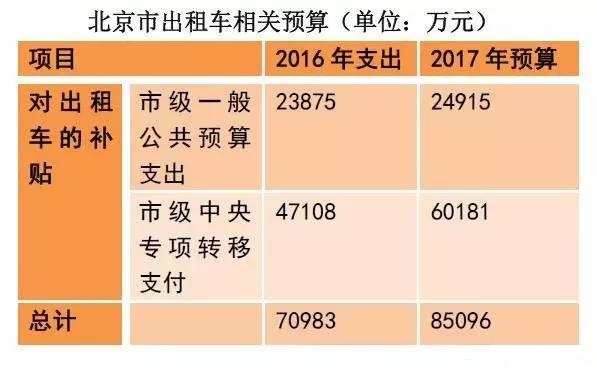 北京2017預(yù)算中還有一項叫做“對出租車的補貼”,出自于成品油價格改革對交通運輸?shù)难a貼。根據(jù)四部門(財政部、交通運輸部、農(nóng)業(yè)部、國家林業(yè)局)2016年4月發(fā)出的《關(guān)于調(diào)整農(nóng)村客運、出租車、遠洋漁業(yè)、林業(yè)等行業(yè)油補政策的通知》,出租車油價補貼資金撥付地方,由地方統(tǒng)籌用于支持公共交通發(fā)展,新能源出租車、農(nóng)村客運補助,水路客運行業(yè)結(jié)構(gòu)調(diào)整等。而這筆資金預(yù)算2017年較2016年增加了1.5億。