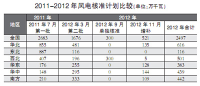 ?。?)2012年風(fēng)電核準(zhǔn)計(jì)劃