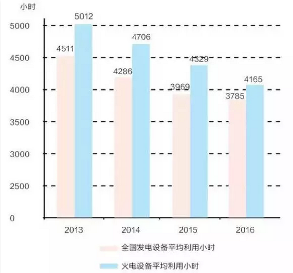 2016年的煤電產能過剩情況持續(xù)惡化。持續(xù)增長的煤電產能和持續(xù)降低的煤電電力需求導致全國煤電利用小時數不斷下降。根據據中電聯統(tǒng)計數據,火電設備平均利用小時數從2015年的4329小時下降至4165小時,創(chuàng)半個世紀以來的最低水平。而這正是由于近幾年煤電新建項目大量投產。